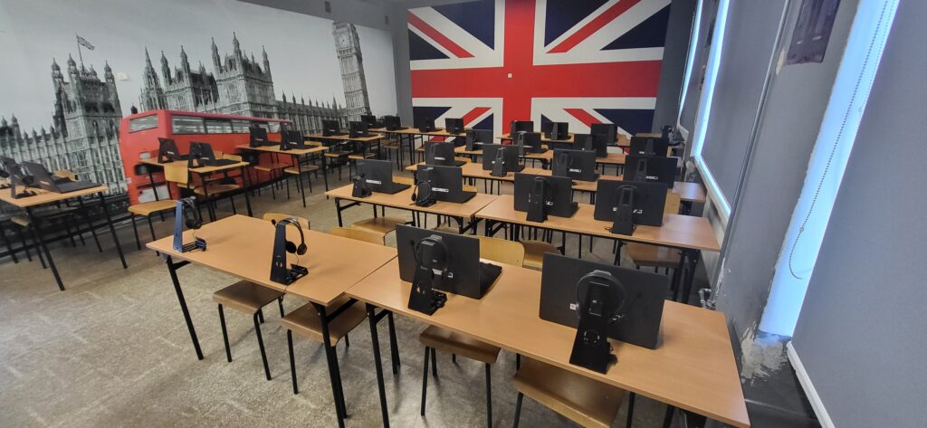Została ona wyposażona w nowoczesny sprzęt komputerowy, zestaw słuchawkowy oraz oprogramowanie wspierające rozwój kompetencji językowych. To miejsce, które pozwoli naszym uczniom jeszcze skuteczniej rozwijać umiejętności komunikacyjne, ćwiczyć wymowę i pracować metodami aktywizującymi.