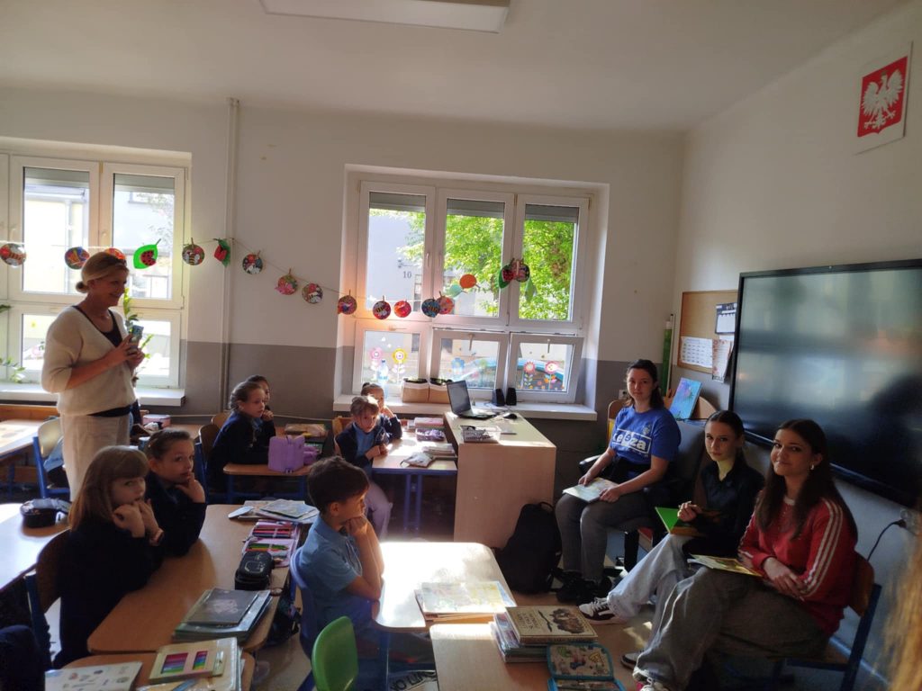 Z okazji Światowego Dnia Książki i Praw Autorskich sześcioro uczniów z klasy III D wraz z p. Justyną Nowak odwiedziło Sportową Szkołę Podstawową nr 3, by w wyjątkowy sposób promować czytelnictwo wśród najmłodszych. Podczas spotkania uczniowie czytali fragmenty książek dzieciom z klas 1-3. Wybrane teksty były ciekawe i dostosowane do wieku słuchaczy, dzięki czemu dzieci z dużym zainteresowaniem śledziły opowieści i aktywnie uczestniczyły w rozmowie po zakończeniu czytania.
